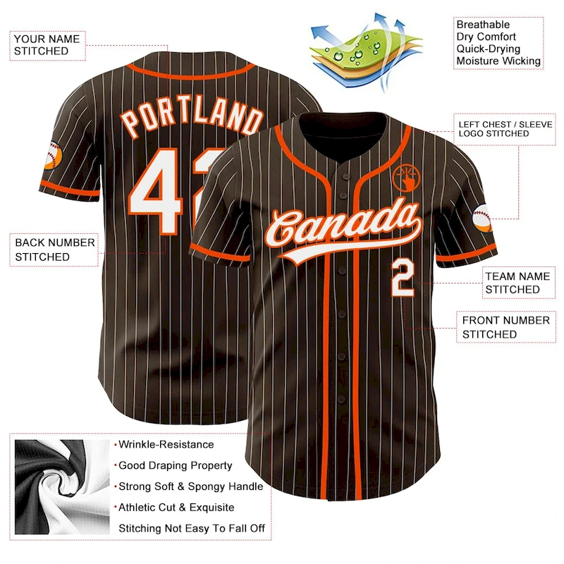 Custom Brown White Pinstripe Orange Authentic Baseball Jersey