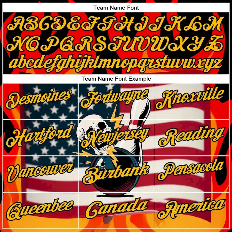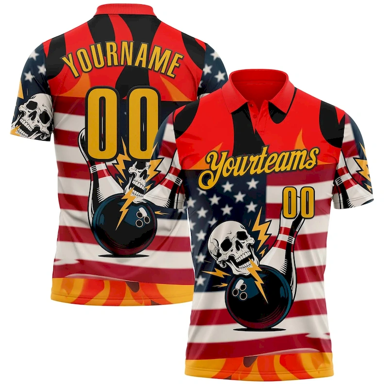 Custom Red Gold-Black 3D American Flag Skull Bowling Performance Polo Shirt