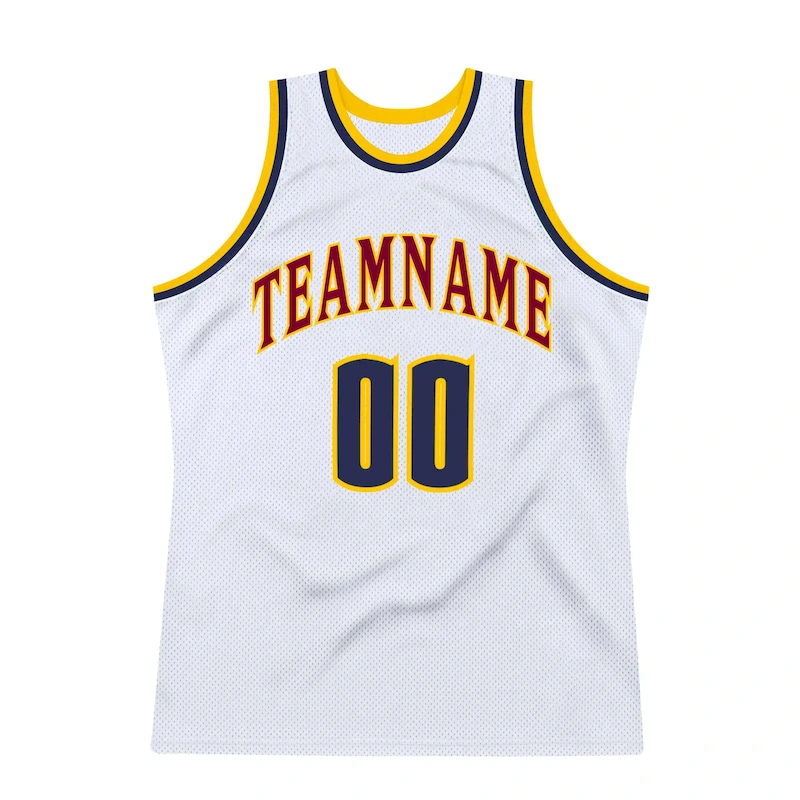 Custom White Navy-Gold Authentic Throwback Basketball Jersey